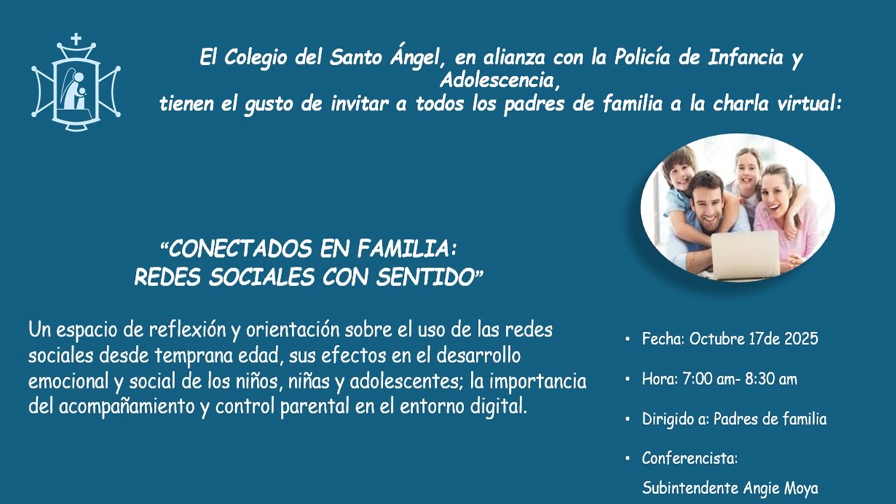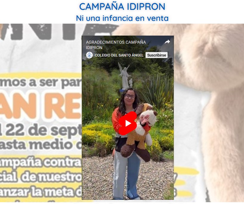 Áreas Recreativas Nuestros Eventos Noticias y Actualidad Santo Ángel CAMPAÑA IDIPRON (Peluches) Posted onoctubre 7, 2025octubre 14, 2025 Gracias COMUNIDAD ANGELINA por acoger esta invitación:) 😊👍 Matías Duarte Posted onseptiembre 24, 2025septiembre 24, 2025 FELICITACIONES A MATIAS DUARTE, DEL GRADO 10°, GANADOR DE MVP DEL TORNEO NACIONAL DE BEISBOL NOS UNIMOS CONTRA LA EXPLOTACIÓN INFANTIL Posted onseptiembre 18, 2025septiembre 18, 2025 Unimos nuestras fuerzas a la Campaña de IDIPRON, donando un peluche que tengamos como símbolo de amor por nuestra infancia. RECICLATON PERSONEROS Posted onseptiembre 2, 2025septiembre 3, 2025 Nuestros personeritos de Primaria invitas a los estudiantes angelinos a participar de la Jornada de Reciclatón. 2a. ASAMBLEA DE PADRES 2025 Posted onjulio 21, 2025julio 21, 2025 Encuentra aquí el contenido de los aspectos más relevantes de la 2a. Asamblea de Padres 2025 PARQUE TEMÁTICO DE SEGURIDAD VIAL Posted onjulio 8, 2025julio 21, 2025 La gestión de espacios espacios lúdicos en el ámbito escolar, es fundamental para promover la calidad de la educación. CANTEMOS A LA VIRGEN Posted onjunio 6, 2025junio 6, 2025 TRADICIONALMENTE, EN MAYO, ENTONAMOS JUNTOS LAS MÁS BELLAS CANCIONES EN HORNOR A MARÍA. MÁS NOTICIAS... Gobierno Escolar Angelino Graduandos Santo Ángel 2024 ¡Plataformas Educativas! Gnosoft Académico Mc Graw Hill Mc Graw Hill Plataforma E L S Pentacidad ¡Enlaces de Interés! Calendario Escolar Pagos en Línea Galería de eventos Angelinos E-Mail Ambientes Angelinos Colegios del Santo Ángel en el Mundo América Bogotá DC. Cúcuta Caracas Ocumare del Tuy San Felipe Europa Almendralejo Bajadoz Entrevías Gijón Huelva Madrid Montachéz Palencia Puerto Real Sevilla África Bata y Kogo Asia Osaka