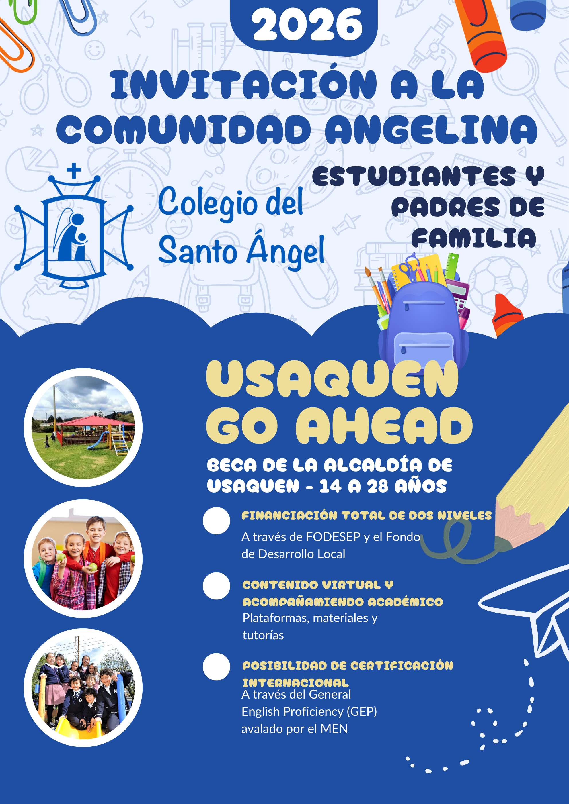 Áreas Recreativas Nuestros Eventos Noticias y Actualidad Santo Ángel PROCESO ELECTORAL PERSONERO 2026 Posted onfebrero 27, 2026marzo 9, 2026 GOBIERNO ESTUDIANTIL 2026 La jornada de votaciones se llevó a cabo con absoluta normalidad, Los estudiantes se dirigieron por cursos,... LISTAS de útiles escolares 2025 Posted ondiciembre 9, 2025diciembre 9, 2025 Aquí encontrarás las listas por grados. Networking CSA Posted onoctubre 17, 2025octubre 24, 2025 PORTAFOLIO DE EMPRENDIMIENTO COMUNIDAD EDUCATIVA ANGELINA CAMPAÑA IDIPRON (Peluches) Posted onoctubre 7, 2025octubre 14, 2025 Gracias COMUNIDAD ANGELINA por acoger esta invitación:) 😊👍 Matías Duarte Posted onseptiembre 24, 2025septiembre 24, 2025 FELICITACIONES A MATIAS DUARTE, DEL GRADO 10°, GANADOR DE MVP DEL TORNEO NACIONAL DE BEISBOL NOS UNIMOS CONTRA LA EXPLOTACIÓN INFANTIL Posted onseptiembre 18, 2025septiembre 18, 2025 Unimos nuestras fuerzas a la Campaña de IDIPRON, donando un peluche que tengamos como símbolo de amor por nuestra infancia. Afíliate a Bibliored Posted onseptiembre 8, 2025octubre 22, 2025 ¡Afiliarte a BiblioRed es muy fácil! La biblioteca es un lugar donde cada libro abre puertas a nuevos mundos, ideas... MÁS NOTICIAS... Gobierno Escolar Angelino Graduandos Angelinos 2025 ¡Plataformas Educativas! Gnosoft Académico Mc Graw Hill Mc Graw Hill Plataforma E L S Pentacidad ¡Enlaces de Interés! Calendario Escolar Pagos en Línea Galería de eventos Angelinos E-Mail Ambientes Angelinos Colegios del Santo Ángel en el Mundo América Bogotá DC. Cúcuta Caracas Ocumare del Tuy San Felipe Europa Almendralejo Bajadoz Entrevías Gijón Huelva Madrid Montachéz Palencia Puerto Real Sevilla África Bata y Kogo Asia Osaka